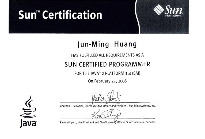 96學年度SCJP短期課程訓練通過SCJP認證名單