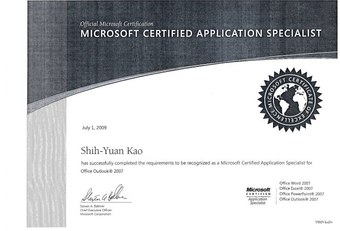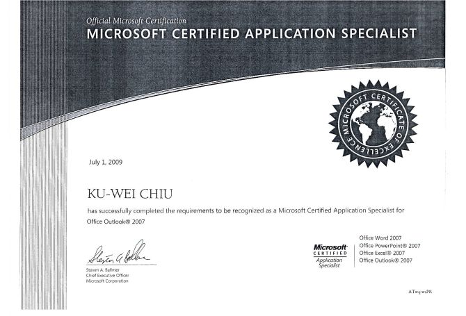 97學年度通過微軟-MOS(OUTLOOK)認證名單 |