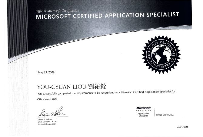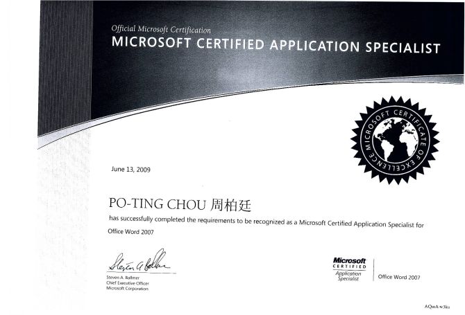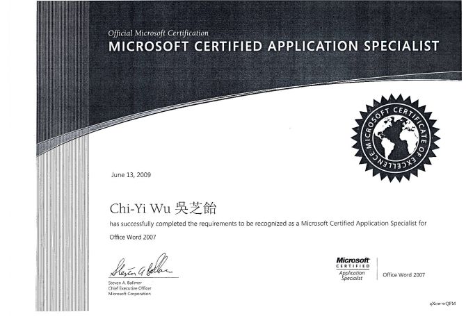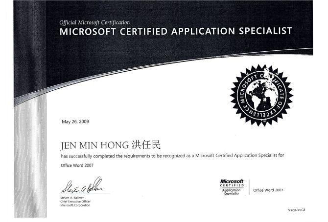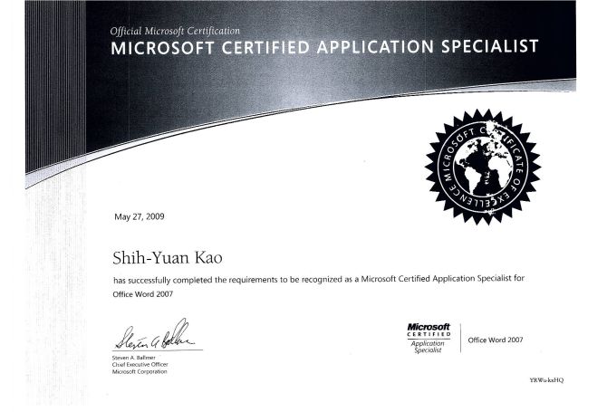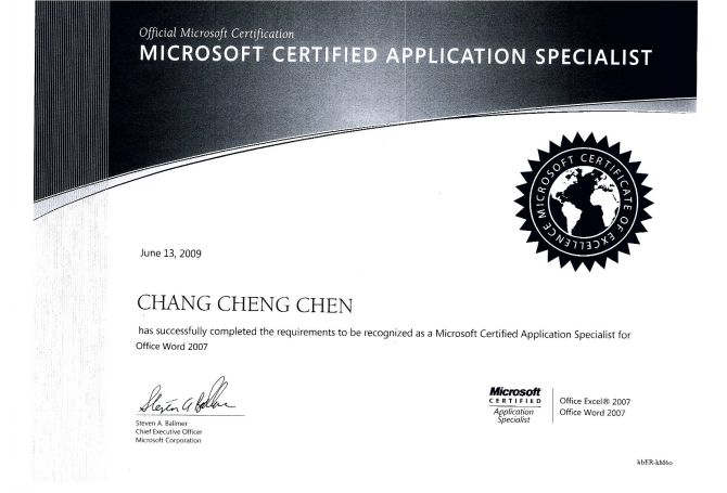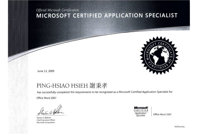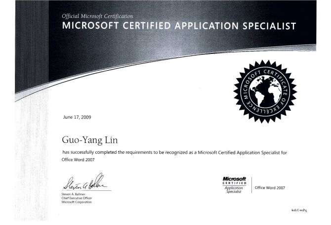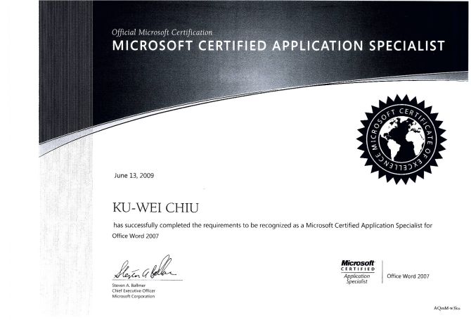 97學年度通過微軟-MOS(WORD)認證名單 |